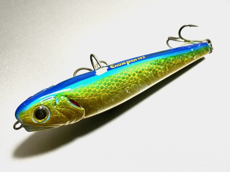 多分1番釣ったのはチャムペン。元はシイラ用ですが、私はシーバスルアーとして使い込み、山陰でも山陽でも抜群の釣果を叩き出しました。105mmとボリュームはありますが、広島や山口で長くやってる人へペンシルなら?って聞いたら恐らく大半の人はこのルアーを上げると思います。それほどダントツの釣果です