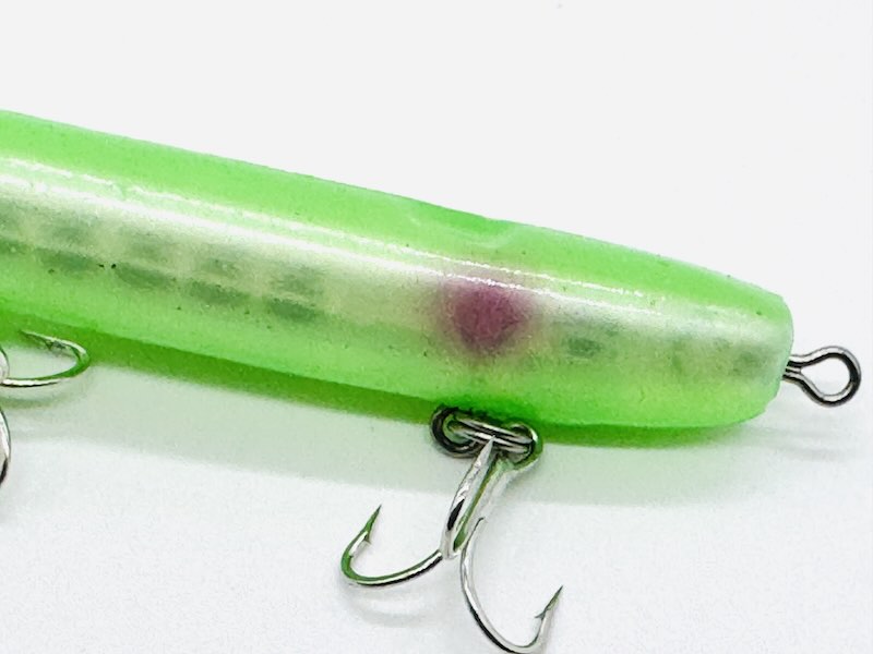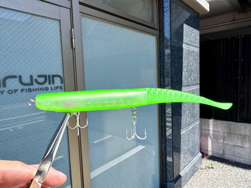 不思議とグリーンって表層系のルアーに採用すると効果的な事多いんです。理由は全く不明ですが、サヨリとか緑っぽい色のベイトが多いからなのか?